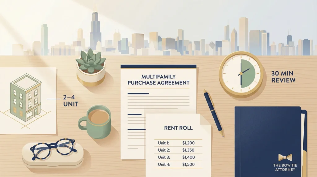 If you are about to write an offer on a Chicago multifamily property, The Bow Tie Attorney can run a fast legal review so you know whether this deal deserves more time or a polite no.