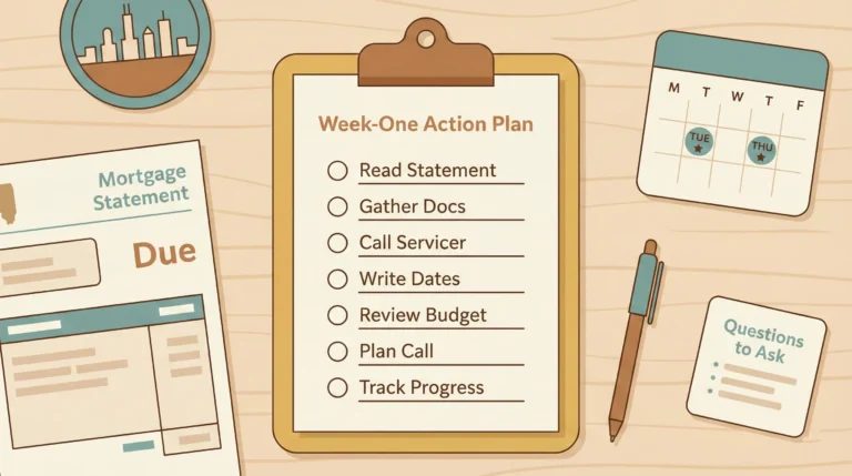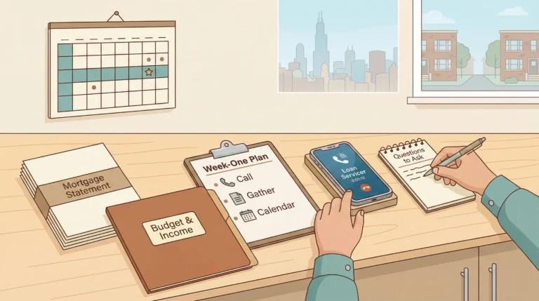 If you’re in Illinois and already know you can’t fix this with a single paycheck, schedule a Quiet-Phase File Review. We review your mortgage, your budget, and your early servicer communications so you’re not guessing about what happens next.