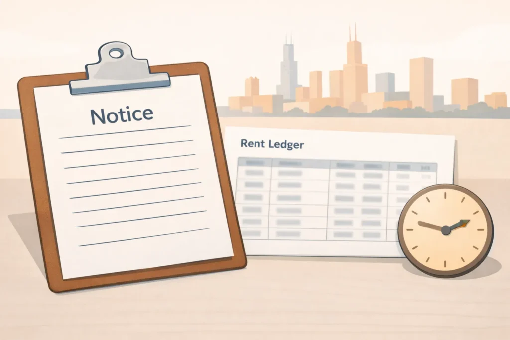 In Cook County, public guidance also describes a five day notice for nonpayment and highlights the tenant’s right to pay within that period to stay, which affects your negotiation posture and your ledger cleanup.