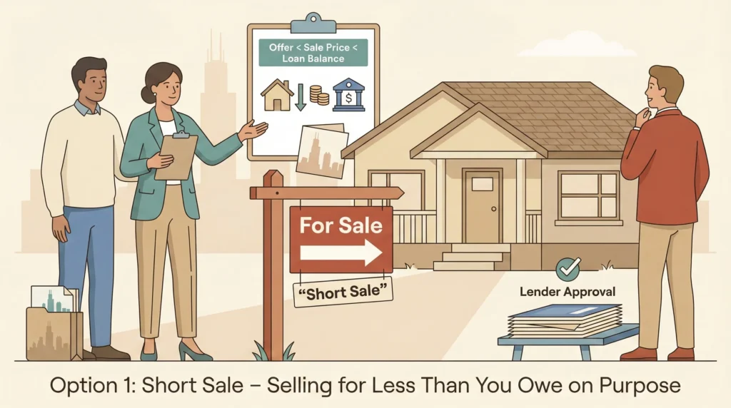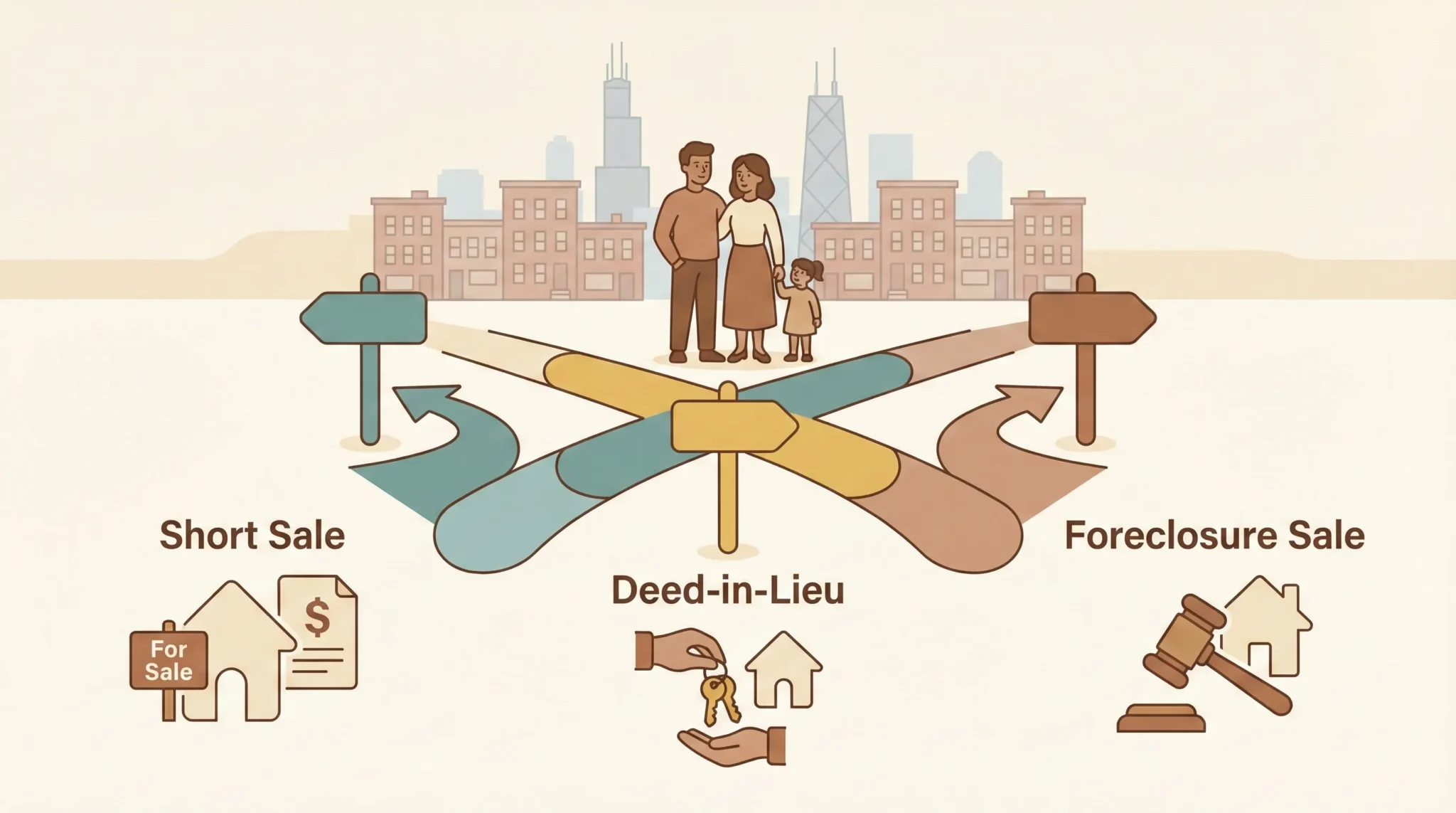 Short sales, deeds-in-lieu, and foreclosure sales are not abstract concepts for other people. If you are in an Illinois foreclosure and know you are not keeping the house, they are the actual doors in front of you.