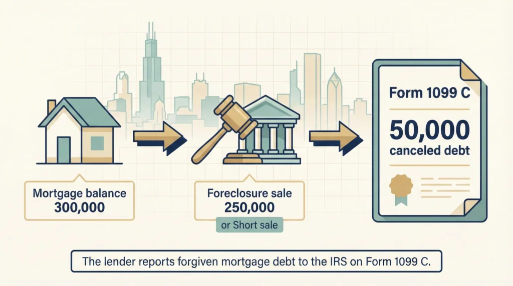Taxes, 1099 C Forms, and Forgiven Mortgage Debt: When to Call a Tax Pro After an Illinois Foreclosure
