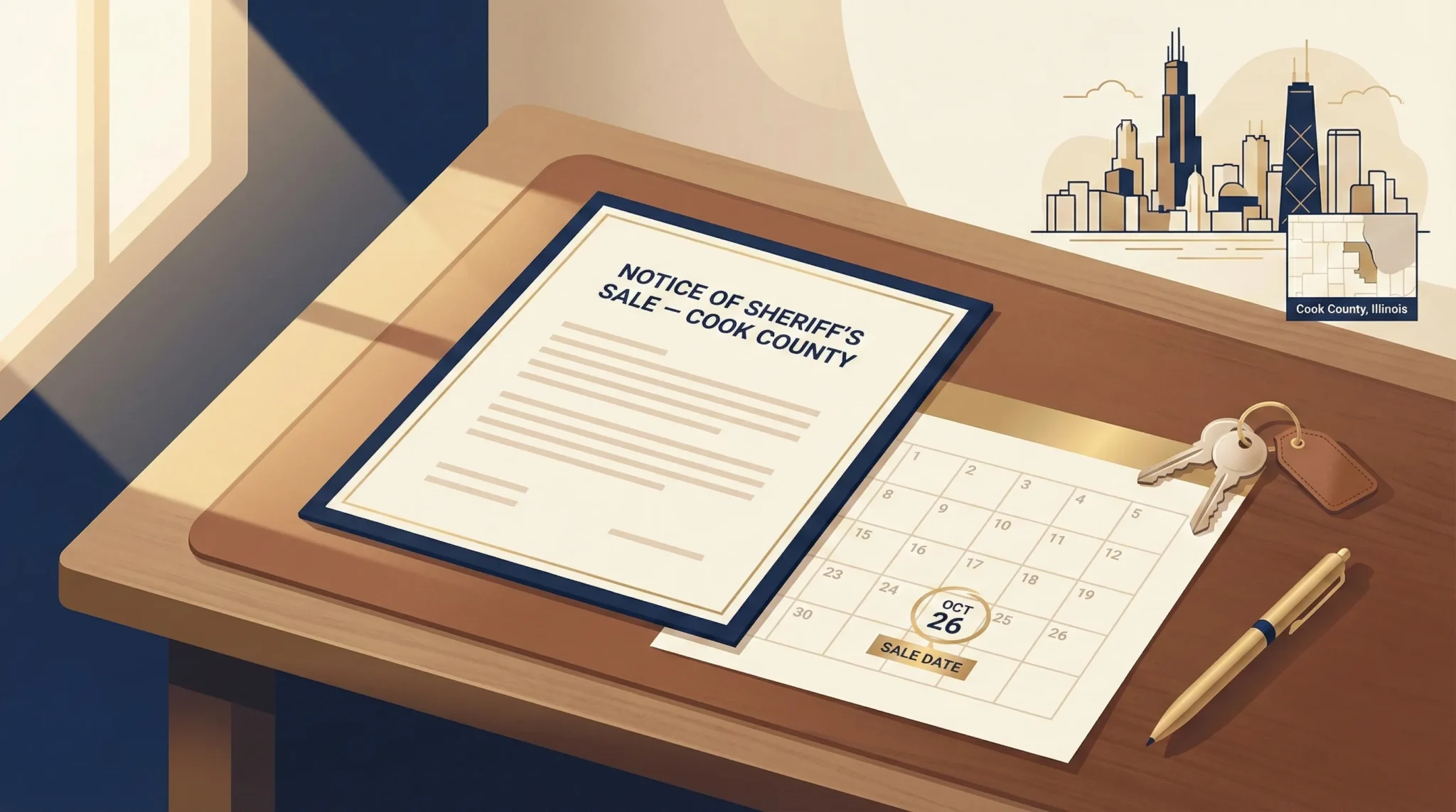After judgment, the lender or its attorney asks the court to approve the terms of sale and set a sale window. Once that order is entered, the selling officer schedules a specific date and time. Under Illinois law, there must be advance notice and publication before the auction, and homeowners typically receive mailed notice telling them when and where the sale will occur. In Cook County, sale information is also listed through the Sheriff’s Office or designated auction platform.
